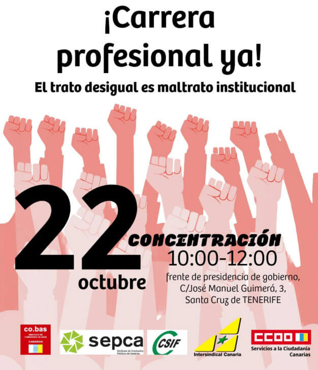 Por todo ello, no cabe más espera, demandamos lo que es justo. Exigimos YA la implantación de la carrera profesional para la Administración General de la Comunidad Autónoma de Canarias.